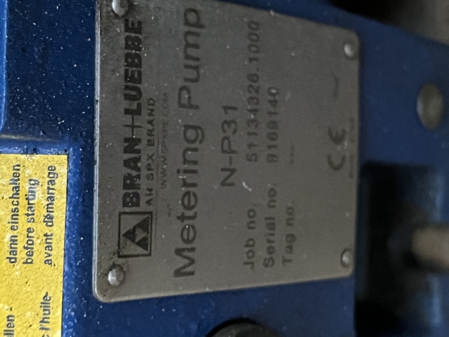 1 x second hand Bran + Luebbe Metering Pump N-P31 fitted with 0.55kw motor